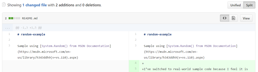 The latest commit is showing you the commit for the last time any files at this folder level were modified. Let’s look at my simple random-example.