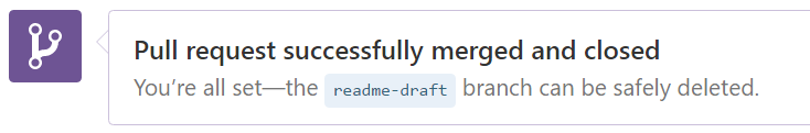 Using my random-example repo, you’ll watch me merge Updated the readme (PR #1) into the master branch in the steps below.