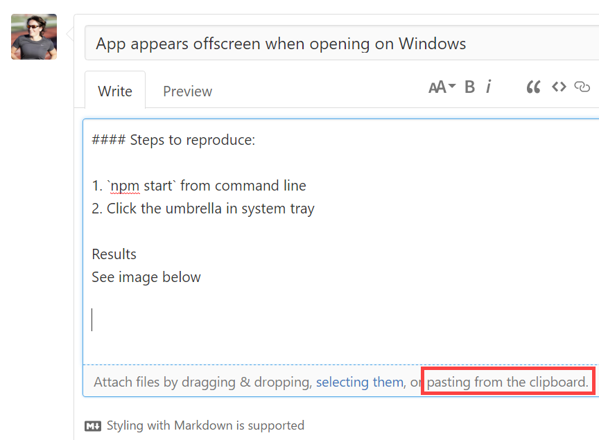 Suppose you want to open an Issue on a project on GitHub. For example, let’s say you were learning Electron and tried out my your-moment-of-github-zen app on a Windows machine. You’ll quickly noticed that I wrote it on a Mac environment.