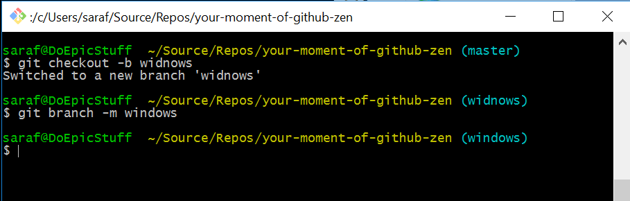 Suppose you’ve forked a repo and have cloned a local copy. You’re ready to start making changes, but wait! first you’ll want to create a new branch first before making your modifications. (Don’t worry if you forget this step. I always do. Fortunately, you’re using Git now and there’s a way to do anything and everything it seems. I’ll cover how to get out of this state gracefully in a future tip.)