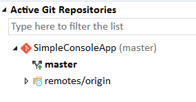 To show we’re still on the same branch as before (e.g. master), go to Team Explorer – Home – Branches to verify.