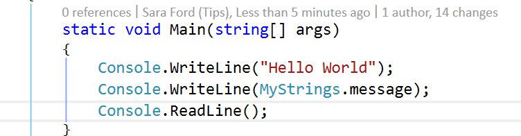 Back in Visual Studio, let’s add a Console.ReadLine() to make sure the console window doesn’t go away…