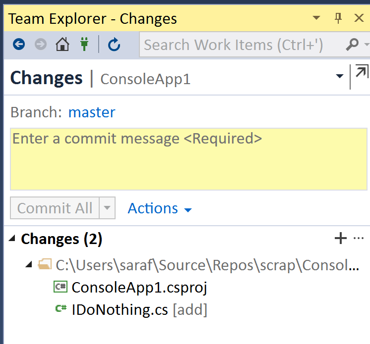 P.S. I can’t find in Visual Studio where to see the upstream branch. You can see all remote branches in the history view, but that’s not quite the same. Perhaps since in Team Explorer (as far as I can tell) 1. you can’t rename a branch checked out from a remote tracking branch and 2. can’t checkout more than one remote tracking branch, it’s assumed that the upstream branch has the same name as your local branch. That’s my guess.