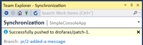 We recently launched support for what we call “Maintainer Workflows.” You’ve got an open source project and you’re receiving pull requests. Suppose you want the contributor to make some changes. You can leave comments in the Pull Request asking them to make whatever adjustments, e.g. adding a Console.Read(); in a Console Application project. But what if they don’t respond in a timely manner or never respond at all? Now within Visual Studio you can pull down those changes, review them, make modifications, commit and push back up to GitHub, all within the GitHub tool window!