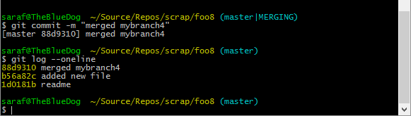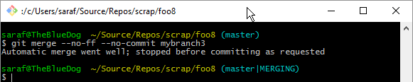 Perfect! We’re done with myfile1.txt and it is staged. Since it is staged, we can simply commit it via `git commit -m “my merge message”`