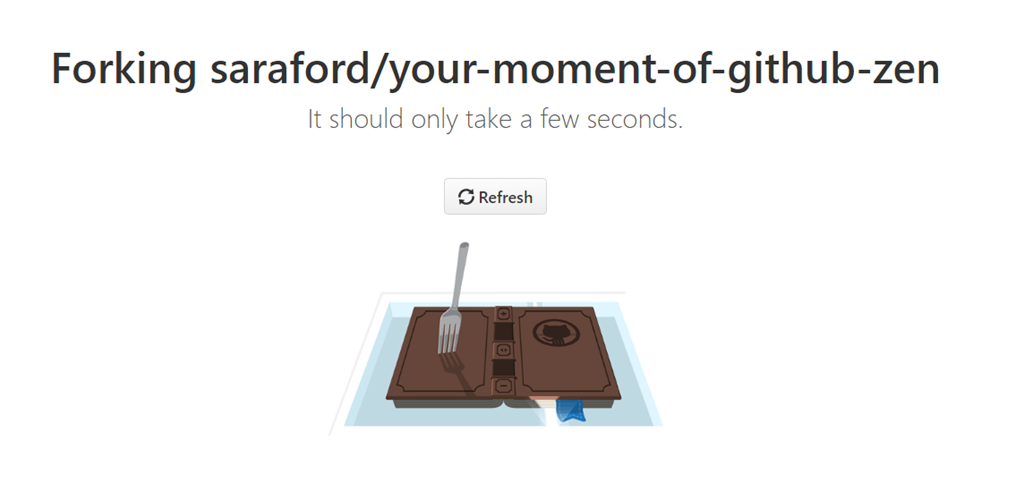 Clicking the Fork button will display a message asking you to wait a few seconds…