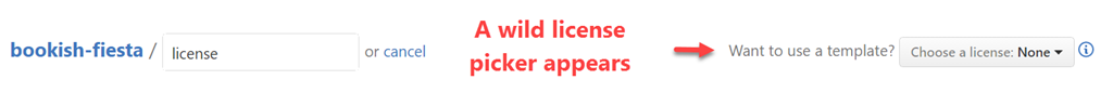 Suppose you didn’t choose a license via the dropdown picker (either on /new or in the method described above). Suppose you’ve previously pushed a license file up to GitHub at some prior point.